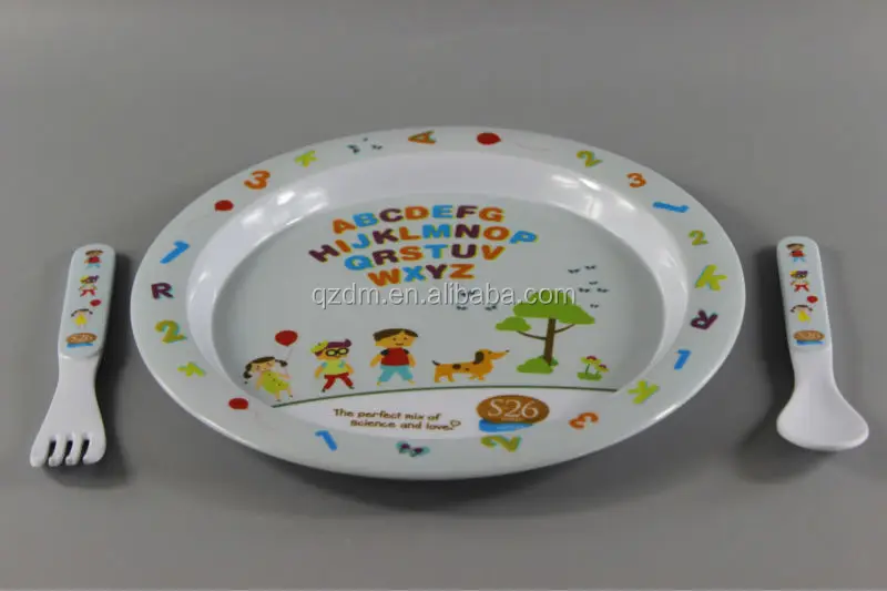 Product description | Food Grade Melamine Kids Dinner Plate And Cutlery Set |