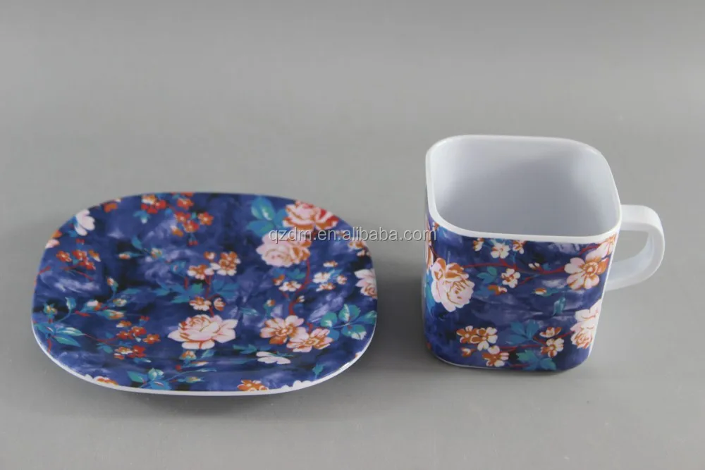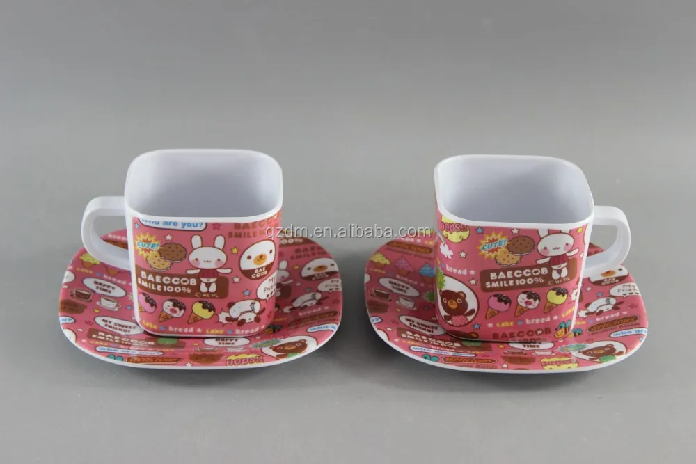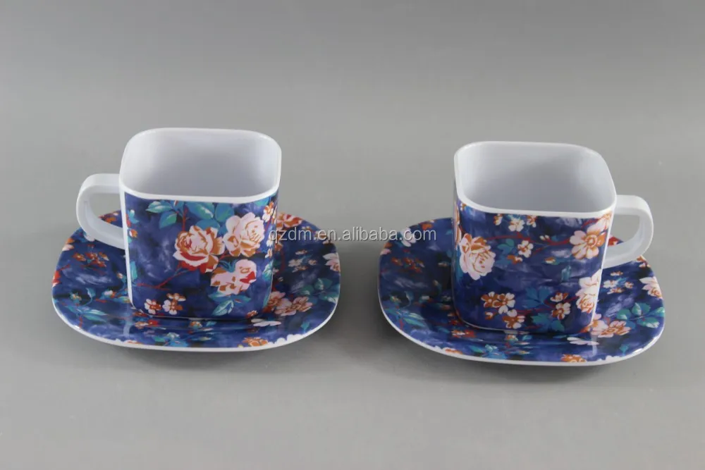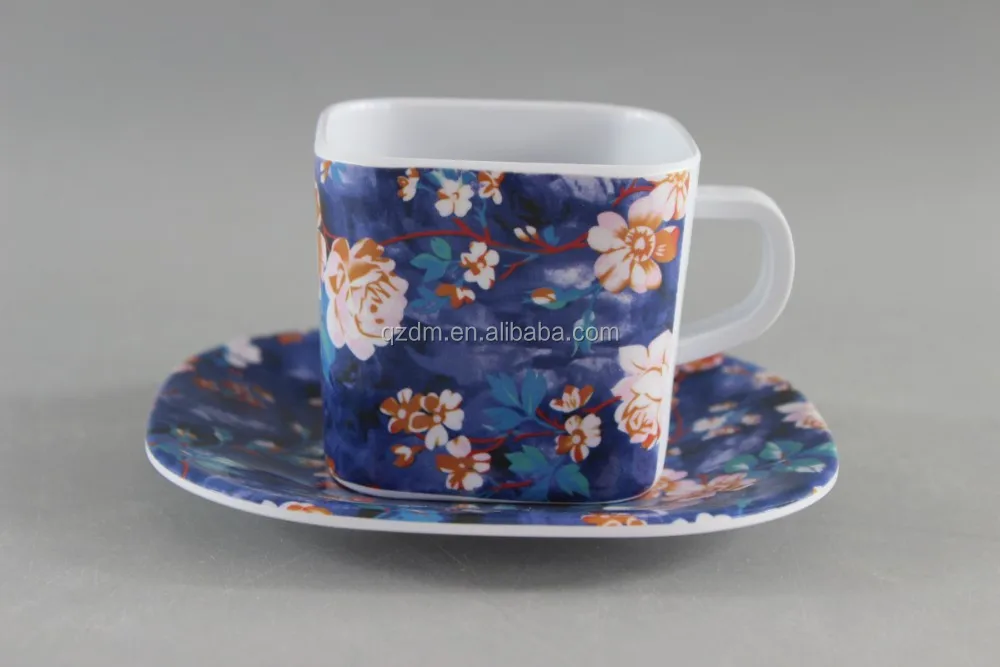 Product description | Melamine Tea Cup And Saucer, 2016 new melamine cup and saucer French Style Print Melamine Square Cup And Saucer Set |