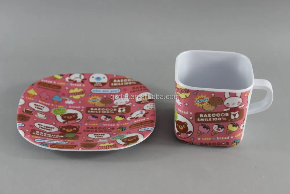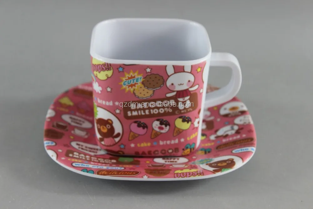 Product description | Melamine Tea Cup And Saucer, 2016 new melamine cup and saucer Cartoon Print Melamine Square Cup And Saucer Set |
