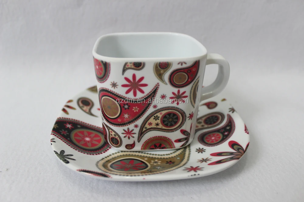Square Melamine Coffee Cups And Saucers